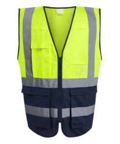 EN ISO 20471:2013 A1:2016 Class 1: Sárga/Tengerészkék, Narancs/Tengerészkék, Sárga/Fekete és Sárga/Királykék